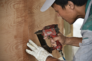 专用环保改性腻子进行披刮,调整墙体的平整度、清洁度和湿润度,通过厚度和平整度的检验控制,确保墙面品质。